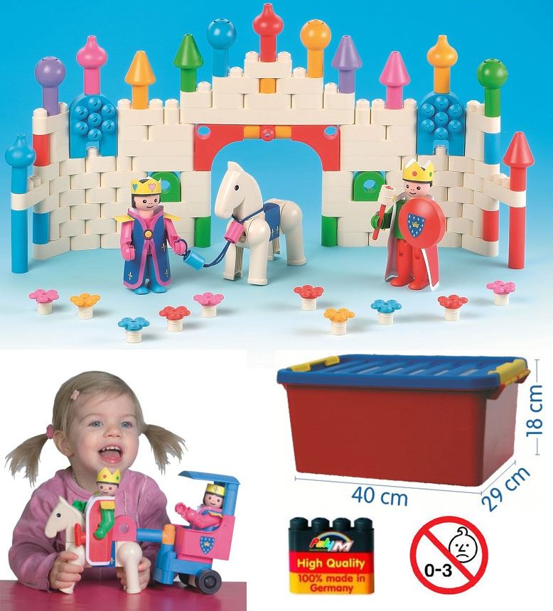 Poly-M 74255 – ДЛЯ ДЕТЕЙ СТАРШЕ 4 ЛЕТ. Специальный игровой набор PLAYWORLD RAINBOW CASTEL состоит из 255 элементов включая фигуры и контейнер ClipBox размером 40 х 29 х 18 см. для хранения конструктора. Оригинальный креативный конструктор Poly-M PLAYWORLD RAINBOW CASTEL предназначен для детей возрастом от 4 до 10 лет. Входящие в набор детали позволяют, по мере роста и развития ребёнка, постепенно расширять конструктор, дополняя его более сложными (и мелкими) элементами Poly-M. В процессе игры в конструктор Poly-M у детей развивается логическое мышление, творчество, восприятие размера и цвета модулей, мелкая моторика и ассоциативное мышление. Все модули конструктора изготовлены из практически бесшумной, мягкой, безопасной пластмассы PE используемой для изделий контактирующей с пищей. Детали и элементы конструктора из пластика при необходимости можно мыть в ручную или в посудомоечной машине ( в специальном лотке или сетке ) при температуре до 40 °C. При производстве всех элементов и аксессуаров немецкой компанией Poly-M используются только высококачественные, экологически чистые материалы, безопасные и антиаллергенные красители, применяются самые современных европейские технологий производства и мировые нормы безопасности продукции ( TÜV Rheinland Европейские нормы EN 71 ). Вся продукция Poly-M разрабатывается и производится на предприятиях в Германии. СДЕЛАНО В ГЕРМАНИИ.
